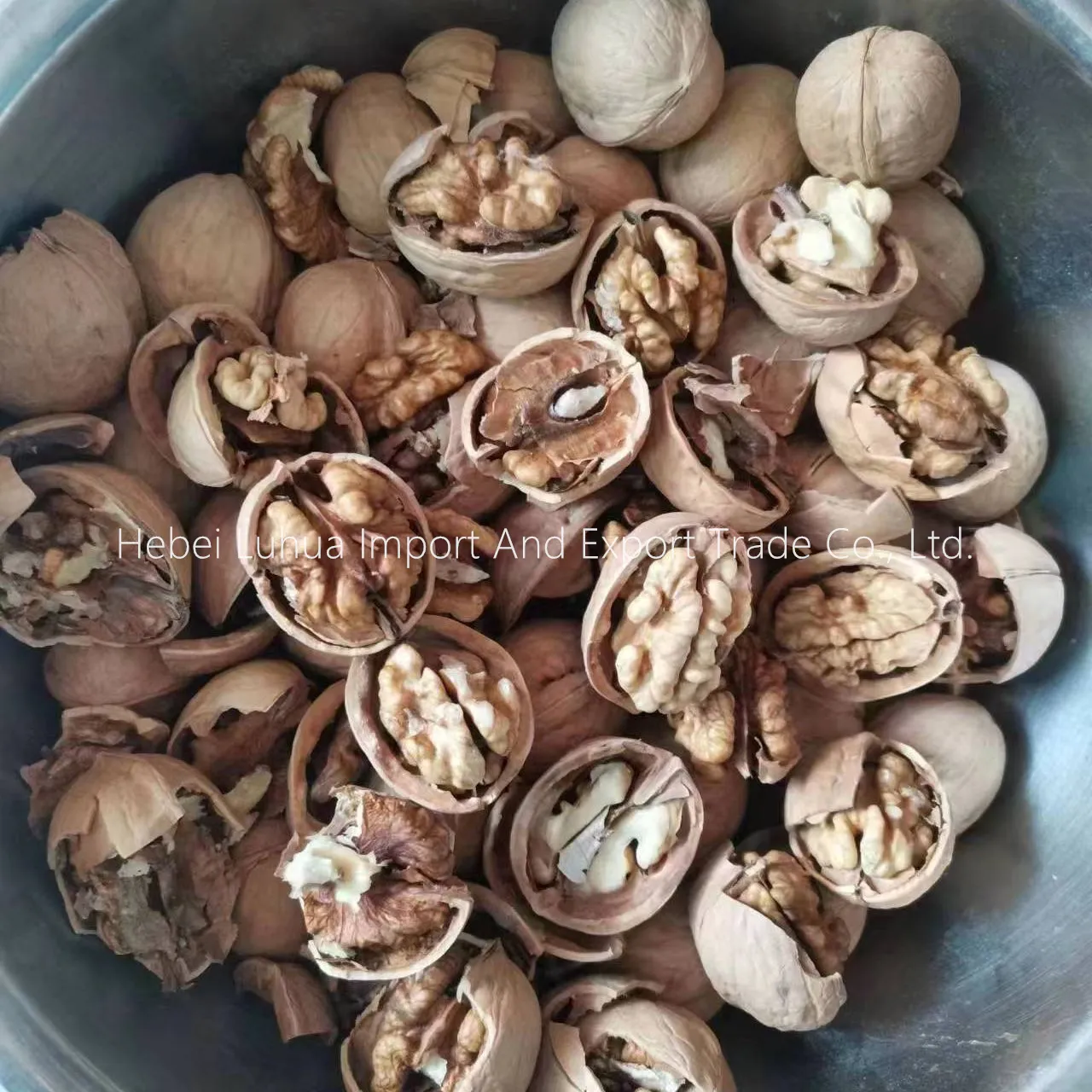 Hebei Luhua Import and Export Trade Co., Ltd. är en äkta kinesisk valnötsexportfabrik, ett företag som integrerar fabrikshandel med professionella produktionslinjer. Valnötterna väljs noggrant ut. Maskinen siktar och tar bort icke-kompatibla föremål. Maskinblåsning, siktar bort tomma skal och tar bort frukter som inte är fulla. Manuellt urval och kvalitetskontroll. Automatisk vägning. Automatisk försegling. Tillverkar etiketter och vikter efter behov. Med utmärkt kvalitet, tillförlitlighet och omfattande kundservice säljs våra produkter i över 100 länder och regioner världen över, vilket gör oss till en pålitlig partner för din globala affärsexpansion!